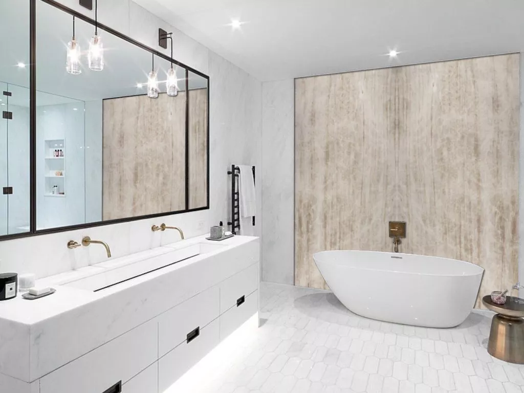Las tonalidades cálidas y neutras de esta piedra la hacen perfecta para transmitir armonía y sofisticación, encajando en una amplia variedad de estilos decorativos. Ideal para encimeras, paredes o pisos, esta cuarcita aporta un toque natural y luminoso, elevando cualquier espacio con su belleza serena y atemporal.
